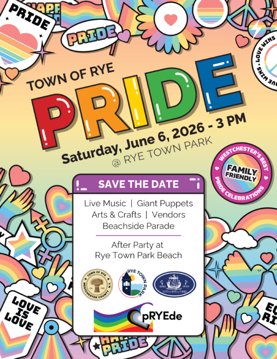The Town of Rye, City of Rye, Rye Town Park, and pRYEde, are hosting the Sixth Annual Pride Month Celebrations on June 6th. The day will be filled with live music, giant puppets, arts & crafts, vendors, a beachside parade, plus an after-party on the beach! Join the fun and show your pride!