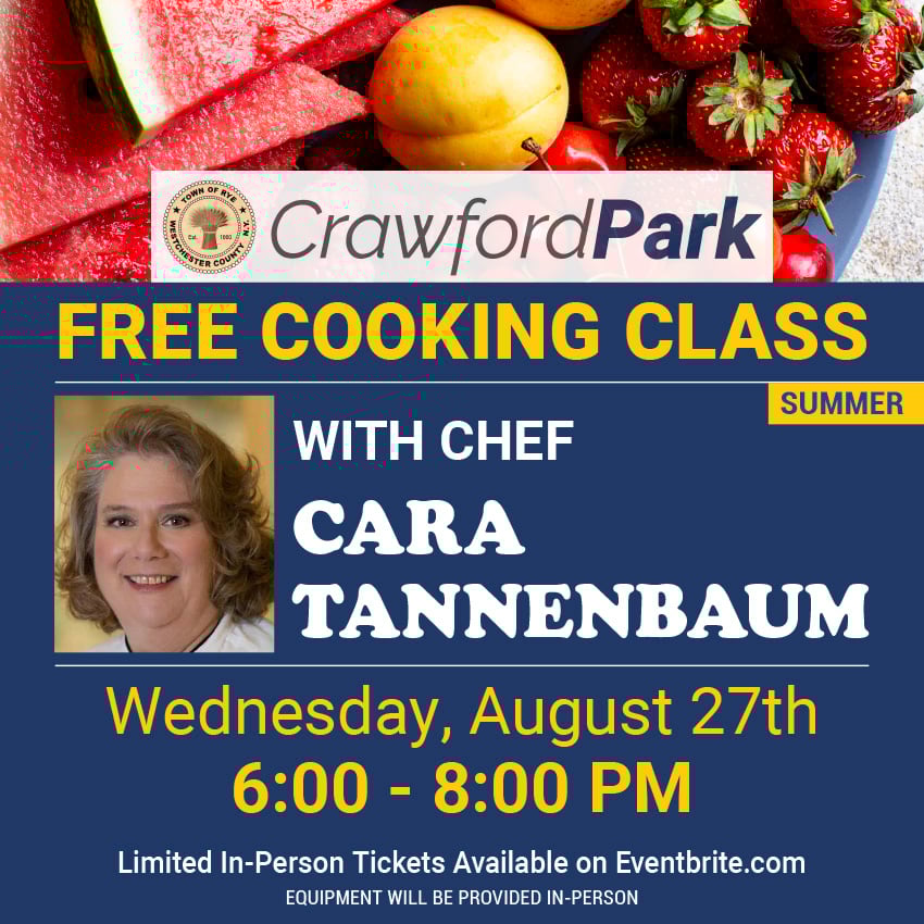 Crawford Park will be hosting a free live-streamed cooking class with professional chef, Cara Tannenbaum on August 27th